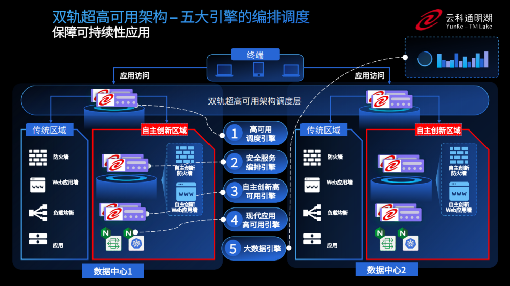 为实现双轨超高可用架构信创区和非信创区的跨域协同,实现信创区域和非信创区域的平滑过渡,BB贝博艾弗森通过五大引擎实现多层次的应用可持续性。
